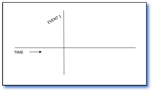 It follows that the chance of two events crossing the timeline at the same point is also nil.