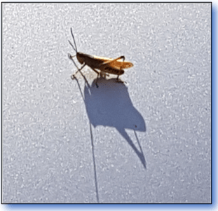 This is a little grasshopper, sunning himself on the bonnet of my car.