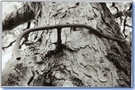 It seems in 1914, a lad propped his bike against a tree, went off to war and never came back. The tree grew round the bike, absorbing it into her trunk. In time, I assume, there will be nothing visible.