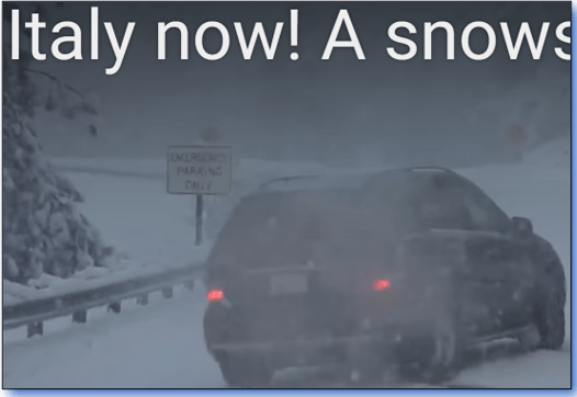 This is from a posting on YouTube, by “New Newspaper Today”, titled “Italy now! A snowstorm with terrible winds buried cars and houses disappeared in the Aosta valley”.
