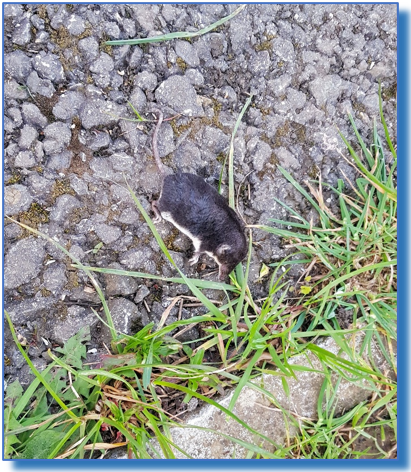 This is a little shrew I saw on the track this morning. It was sad. He seemed to be intact, no sign of an attack so I hope he had a peaceful passing in the night.